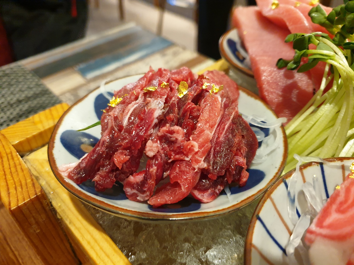 빨간 참치에 시그니처 소스를 얹고, 와사비와 참치 내장젓갈을 함께 올려 먹기를 추천해 주셨습니다.. 평소에 참치를 먹을 때 단순히 와사비와 간장, 김 조합으로만 먹었는데 이렇게 먹으니 독특하니 맛있더라고요.