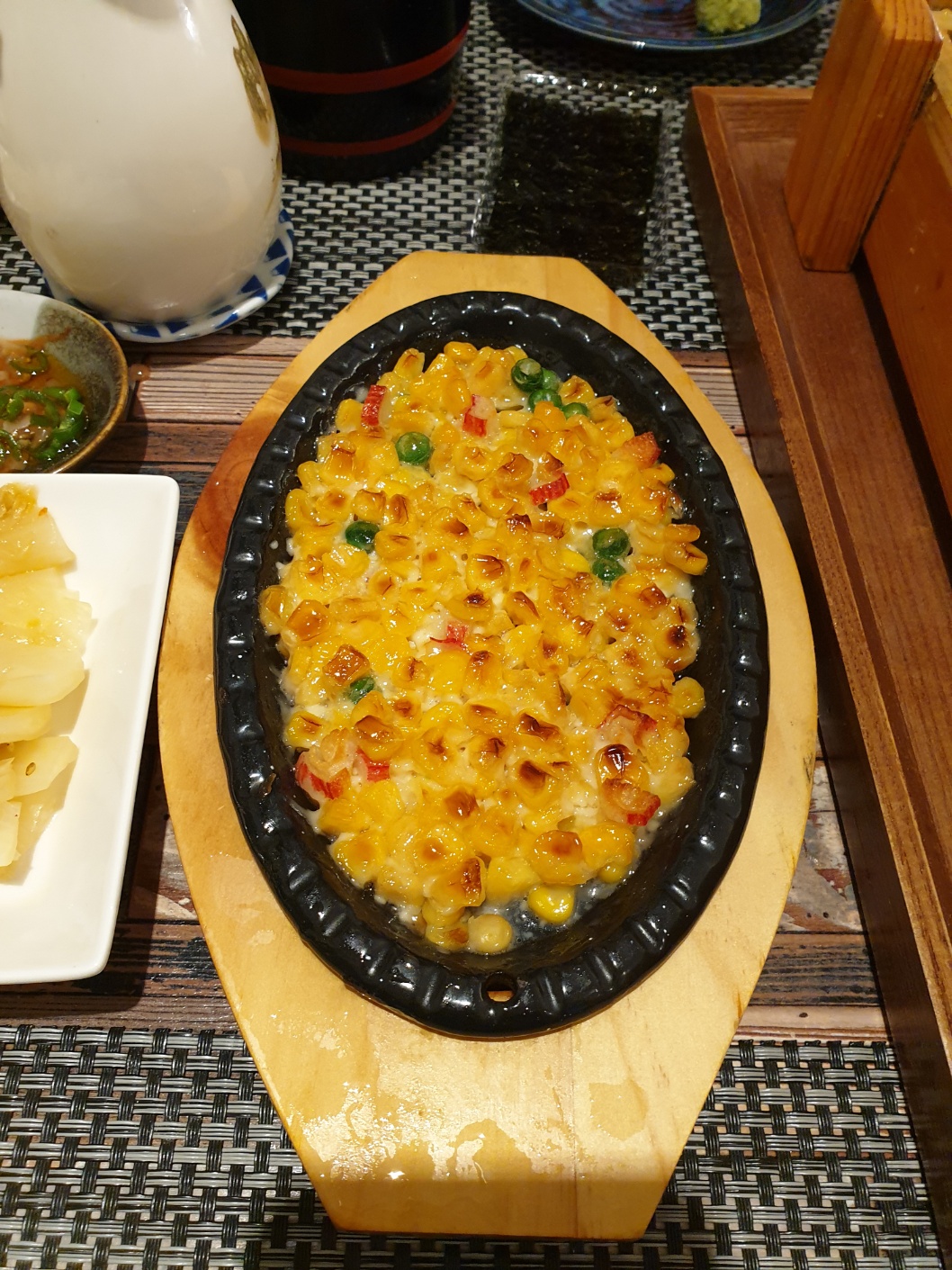 그리고 참치구이와 옥수수콘이 나옵니다.